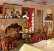 In 2006, Barbara’s breathtaking design of an upstairs bedroom, the closet and the adjoining bathroom was designed for her imaginary daughter Allegra. Aside from an elaborate design, her donation included the permanent rehabilitation of original period light fixtures and wall coverings throughout the space.