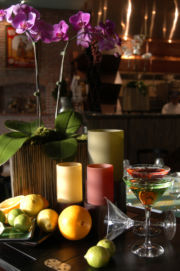 The feelings of balance and flow inspired the distinctive Chinois “energy waves” and yin-yang logo design, as well as many of the forms including the curvilinear entrance partition, undulating bar top, flowing door and window millions and the tile motifs.