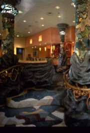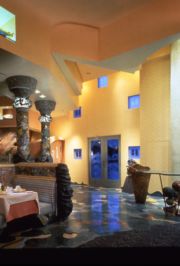 This was Barbara Lazaroff’s most elaborate restaurant endeavor, at once putting Granita on the map and pushing the Wolfgang Puck reputation up another notch, albeit setting it back on cash-in-hand. Still, it made “The LA List” in Wine Spectator: Harvey Steiman noted Barbara Lazaroff’s “exuberant design for Granita.” That was 1995: a decade later, the Food Network was still talking about its “Mediterranean colors and flavors.” Gayot still calls Granita “Wolfgang Puck’s Spago-by-the-Sea” and again there is mention of Barbara’s “exuberant undersea design,” which together with Jennifer Naylor’s Mediterranean cuisine makes for great fun. ~Juliette Rossant, SuperChefBlog