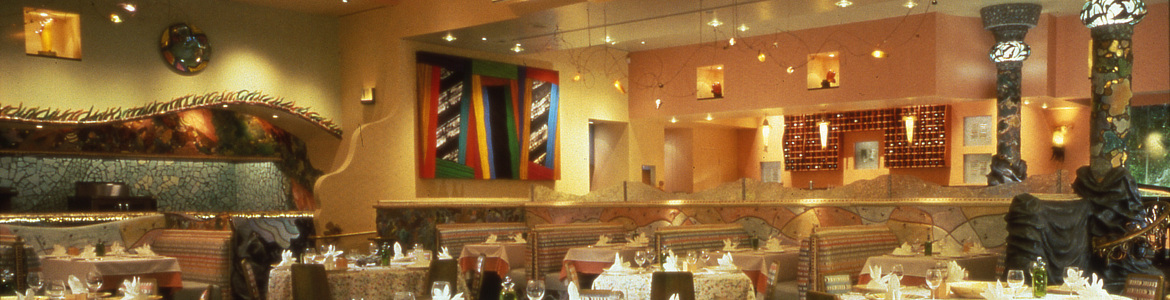 This was Barbara Lazaroff’s most elaborate restaurant endeavor, at once putting Granita on the map and pushing the Wolfgang Puck reputation up another notch, albeit setting it back on cash-in-hand. Still, it made “The LA List” in Wine Spectator: Harvey Steiman noted Barbara Lazaroff’s “exuberant design for Granita.” That was 1995: a decade later, the Food Network was still talking about its “Mediterranean colors and flavors.” Gayot still calls Granita “Wolfgang Puck’s Spago-by-the-Sea” and again there is mention of Barbara’s “exuberant undersea design,” which together with Jennifer Naylor’s Mediterranean cuisine makes for great fun. ~Juliette Rossant, SuperChefBlog