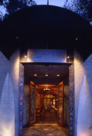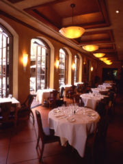 This location has always housed a big, beautiful restaurant, but Puck and his wife have managed to improve things. At the center of the sophisticated restaurant is the old Bistro Garden’s romantic patio, shaded by tall pepper trees. A fountain inscribed with the word “passion” (in various languages) bubbles next to a pair of 100-year-old olive trees imported just for Spago. ~Seeing-Stars.com
