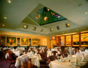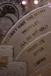 A 14-foot expanse of art glass, which you can also see above, exposed the chefs engaged in what one might view as a silent “la danse des cuisiniers.”